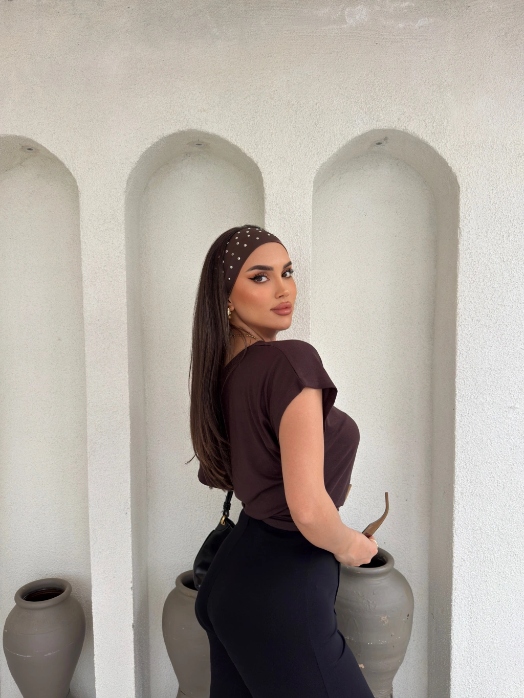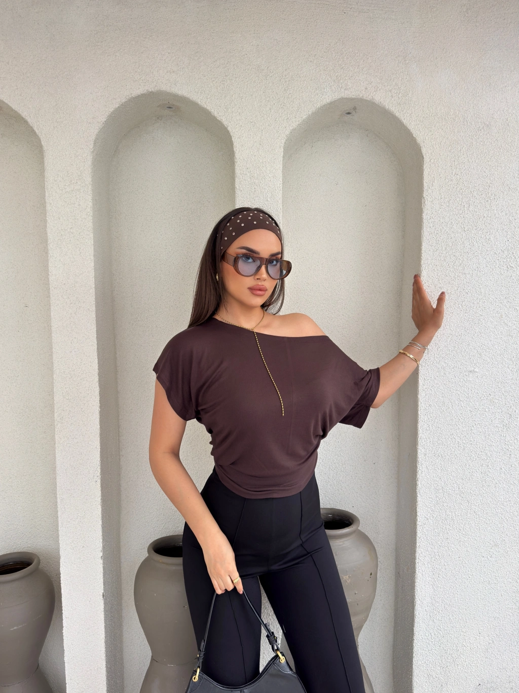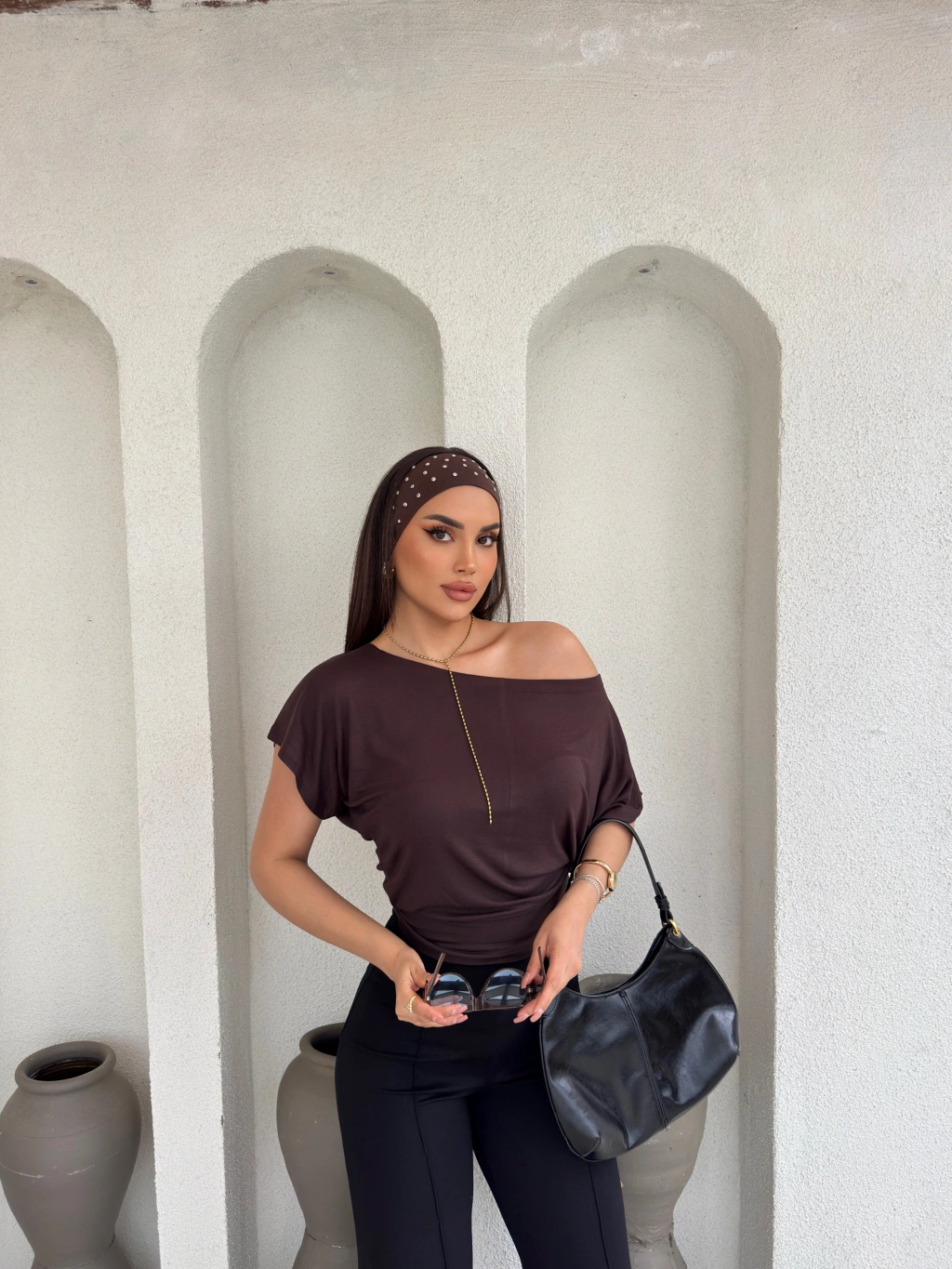 Kahverengi Kayık Yaka Modal Basic Tshırt