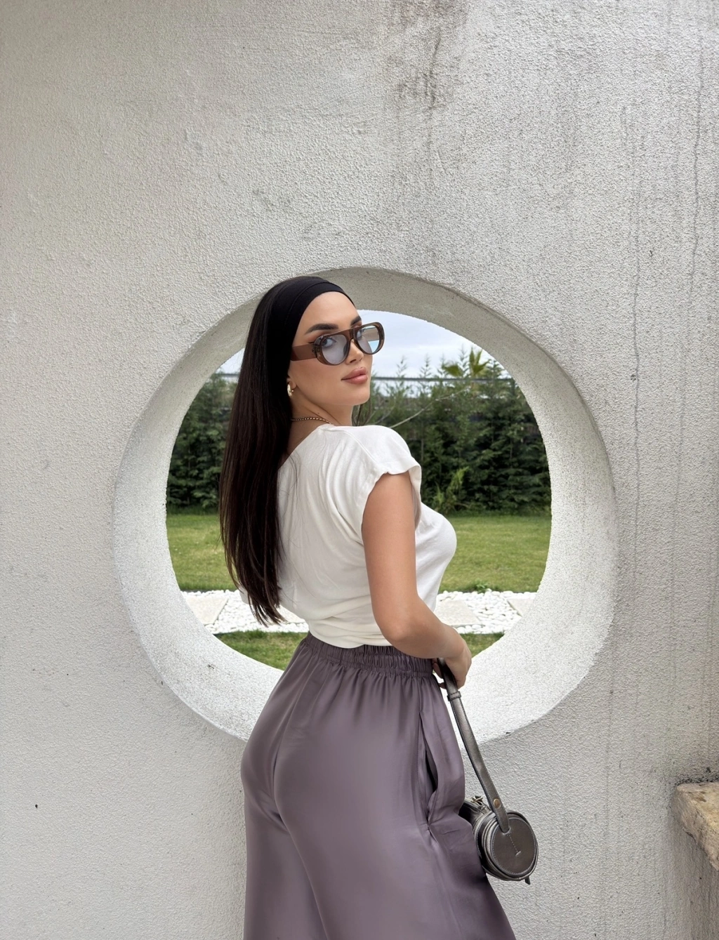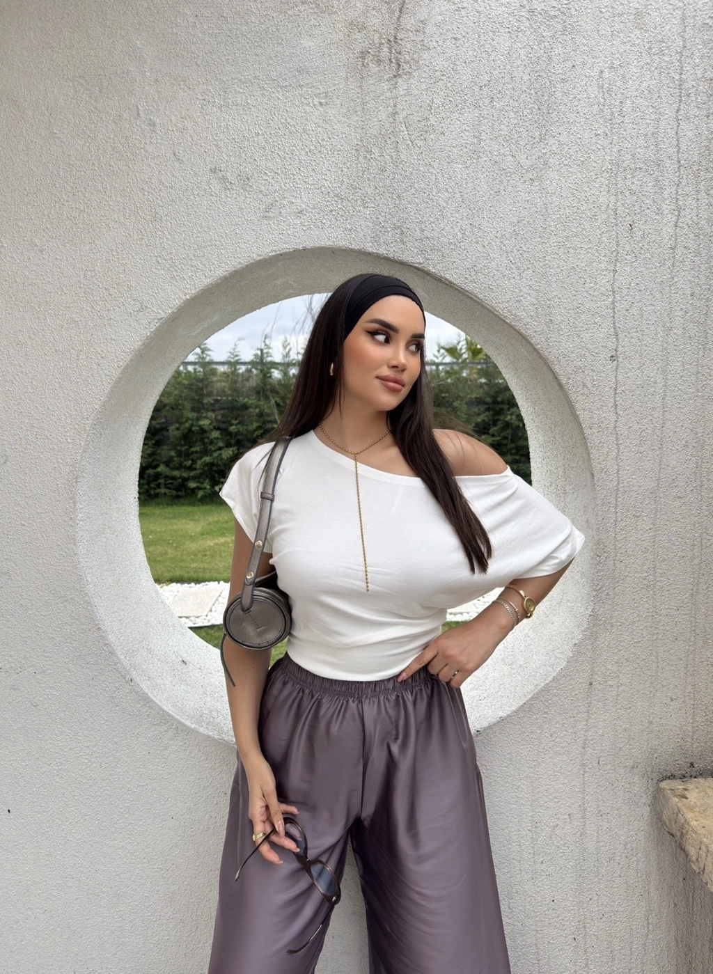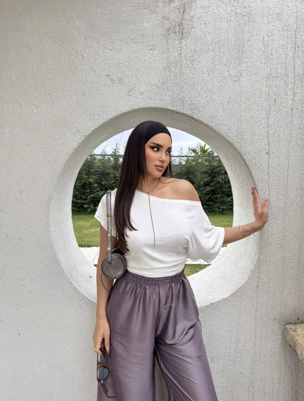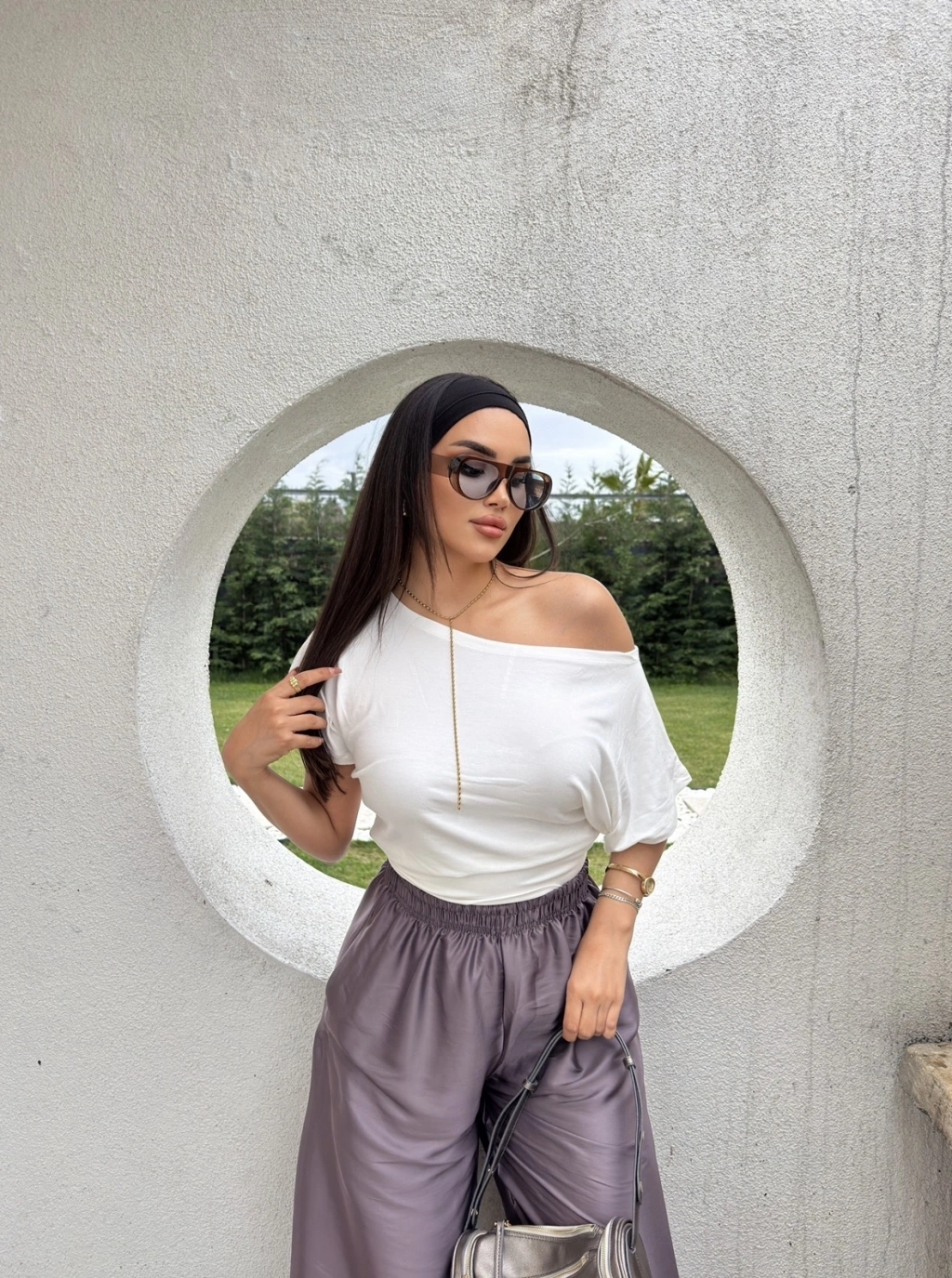 Beyaz Kayık Yaka Modal Basic Tshırt