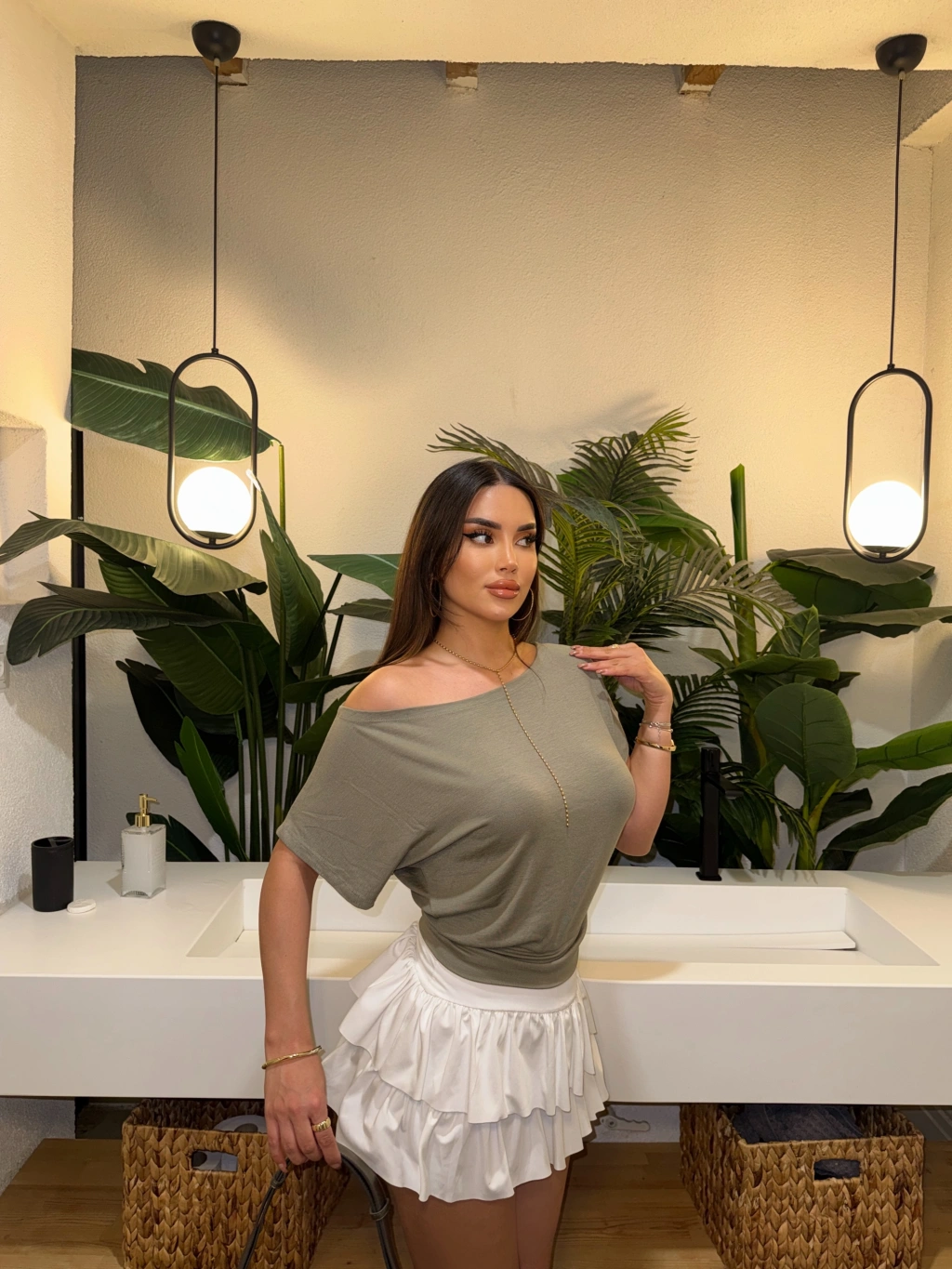 Yeşil Kayık Yaka Modal Basic Tshırt