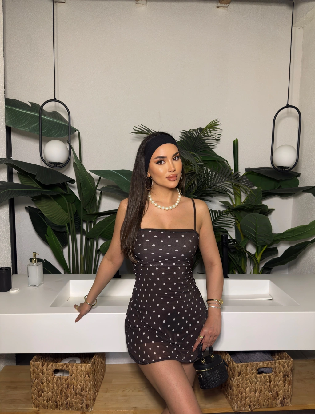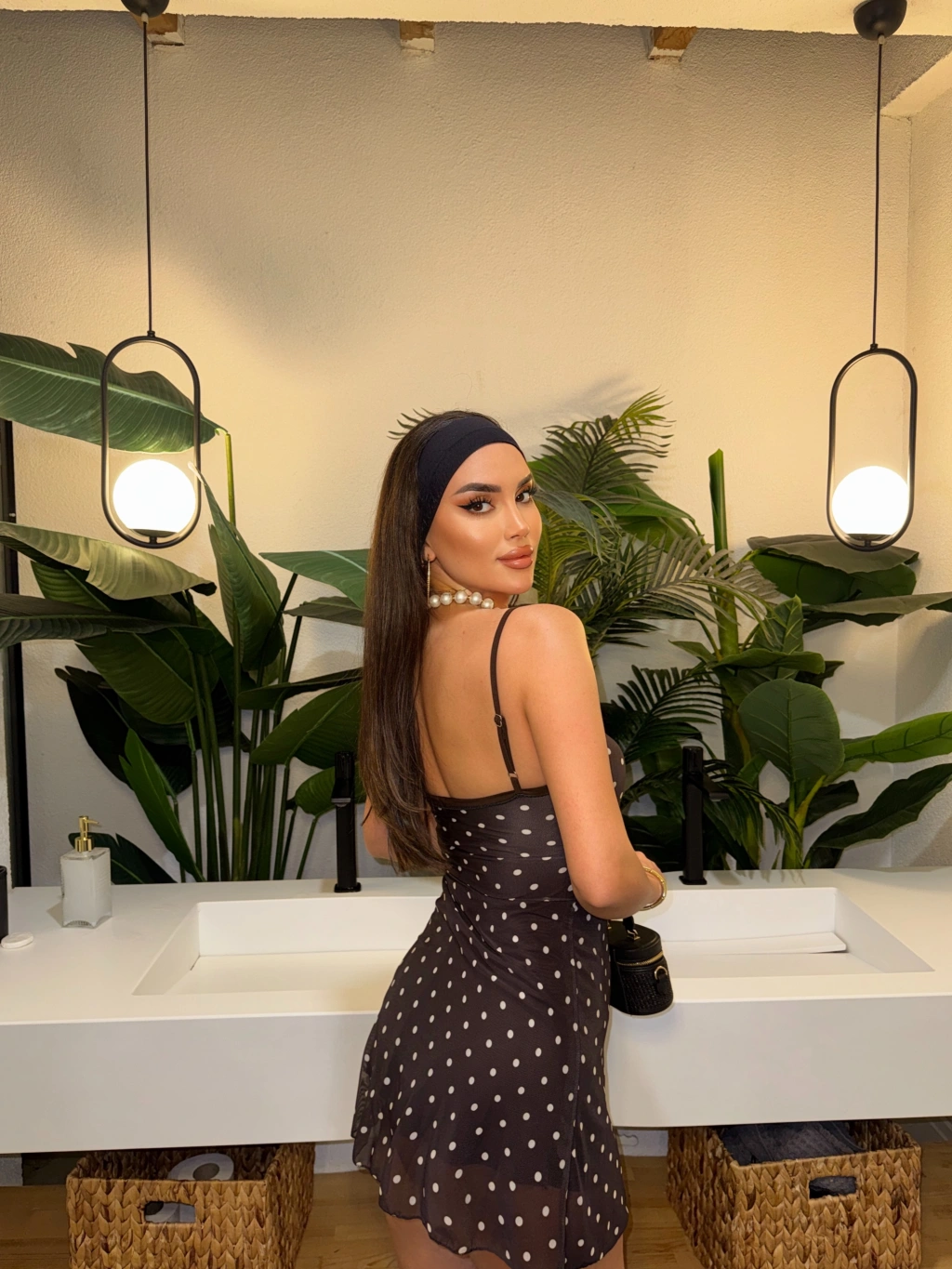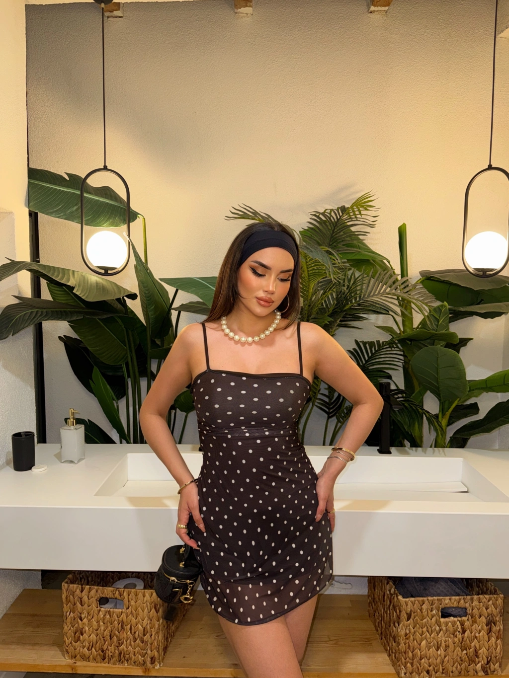 kahverengi Puantiyeli Askılı Mini Elbise