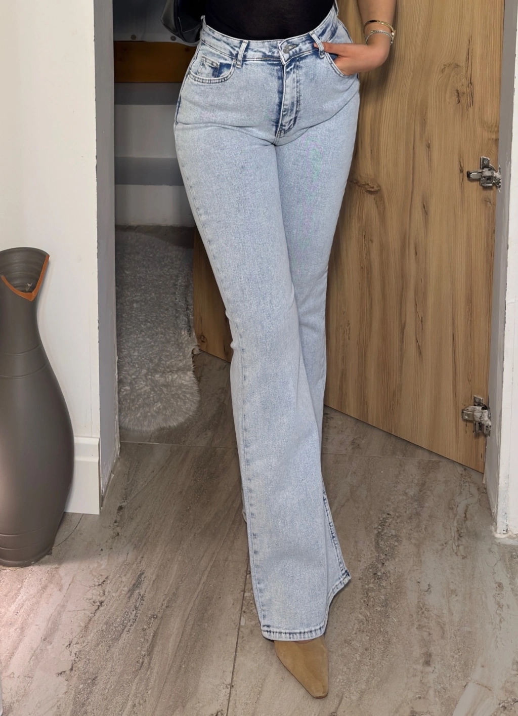 Buz Mavisi İspanyol Paça Yüksek Bel Jean