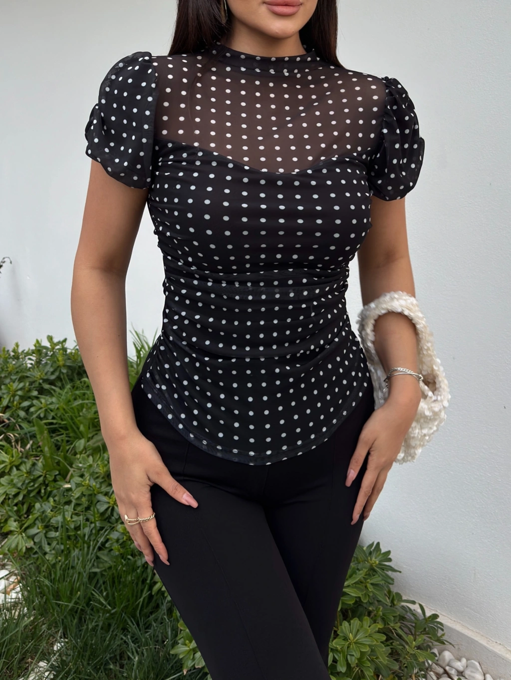 Siyah Puantiyeli Astarlı Bluz