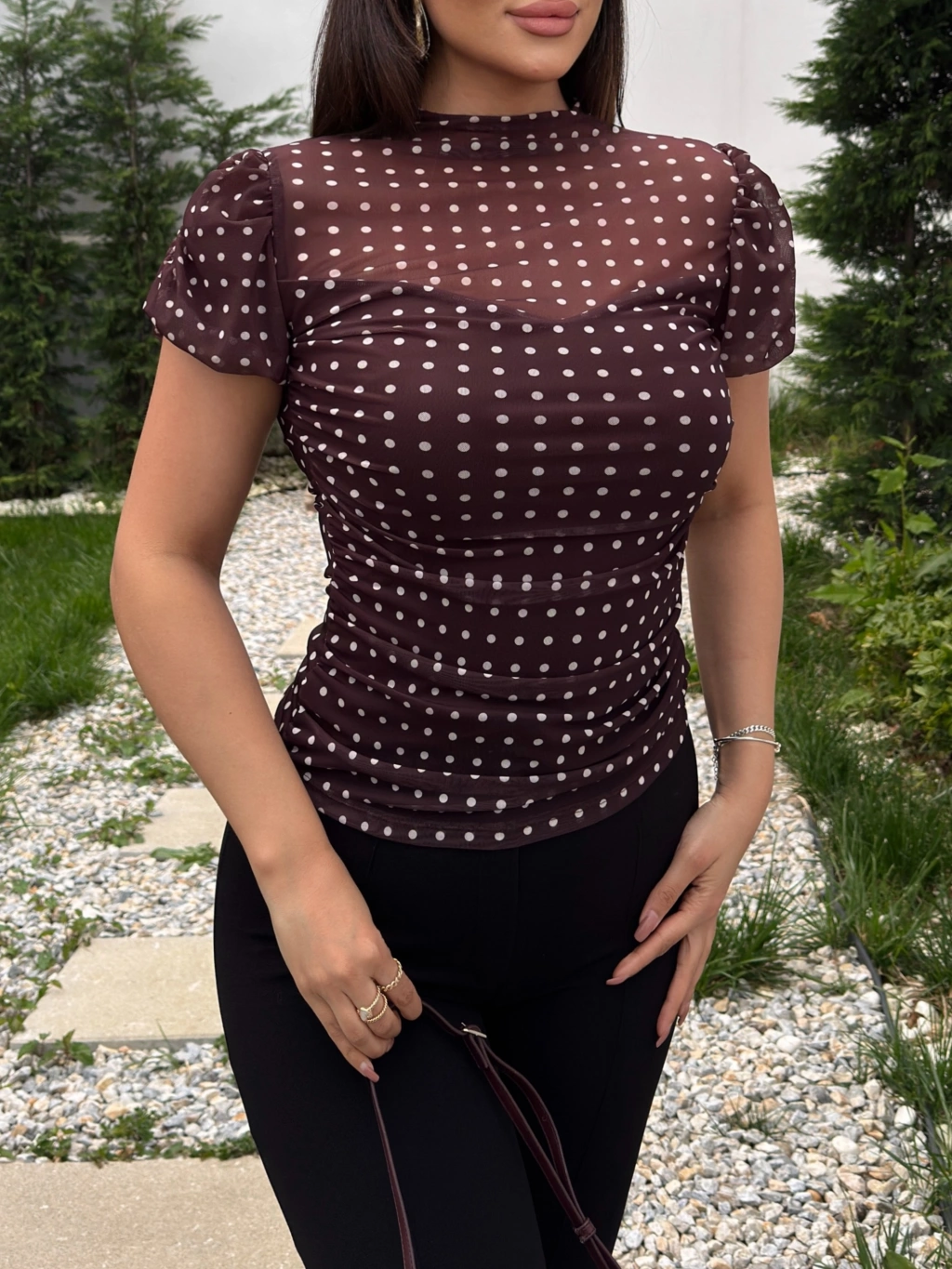 Kahverengi Puantiyeli Astarlı Bluz