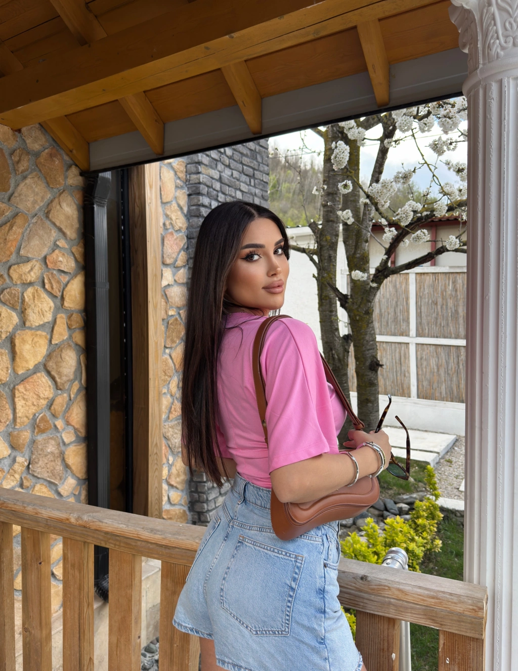 Fuşya Kısa İspanyol Kol Basic Tshırt