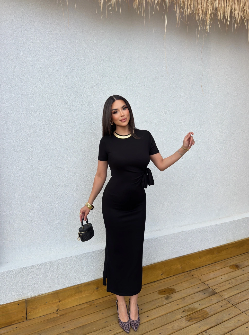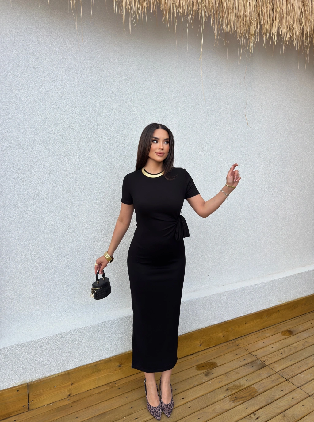Siyah Tasarım Bağlama Detay Uzun Elbise