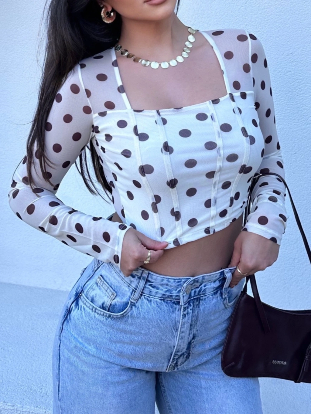 Beyaz Kare Yaka Puantiyeli Crop