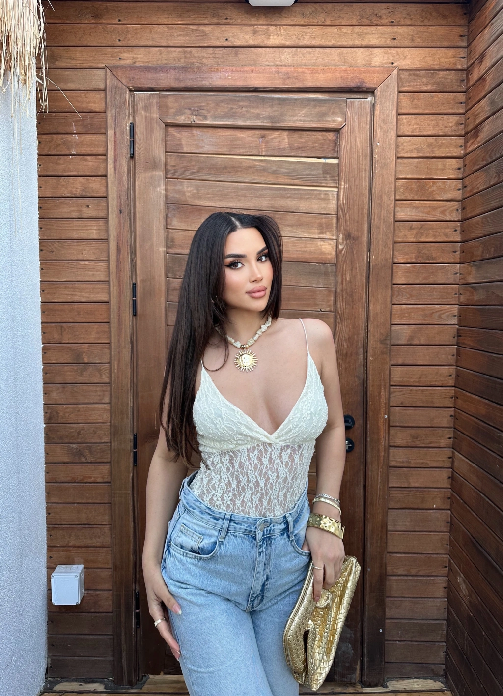Sarı İp Askılı Dantel Bodysuit