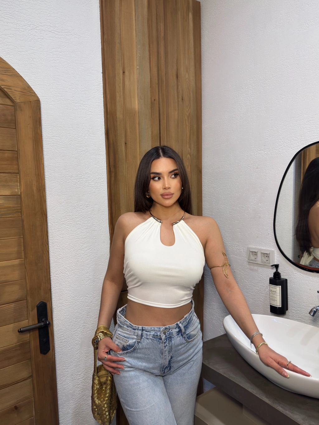 Beyaz Aksesuar Bağlamalı Bluz
