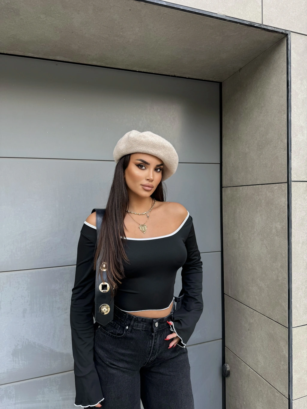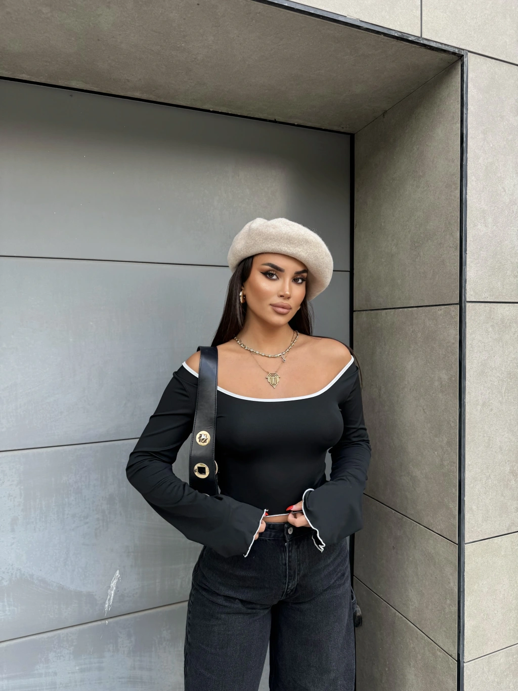Siyah İspanyol Kol Biyeli Crop