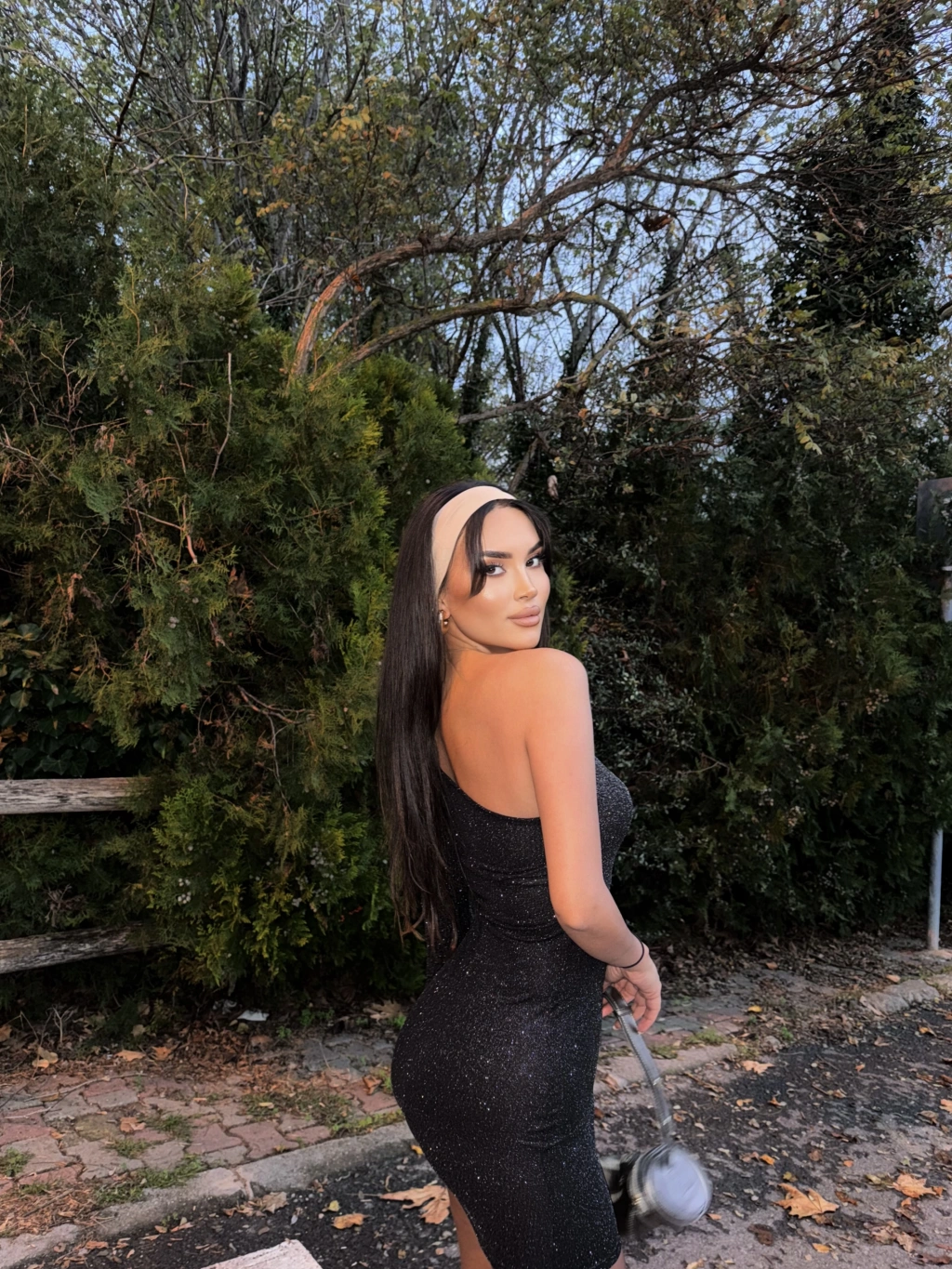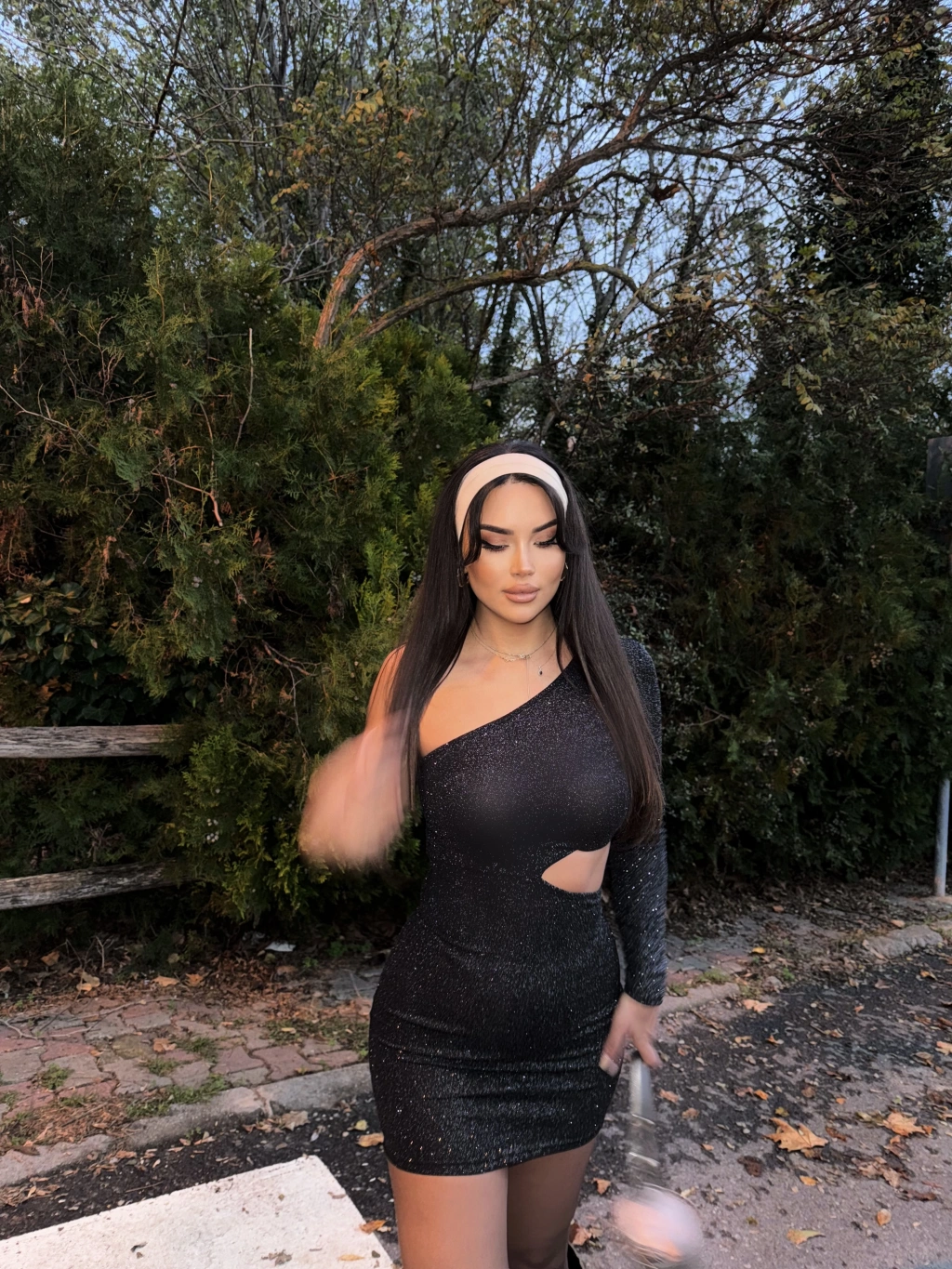Siyah Tek Kol Simli Elbise